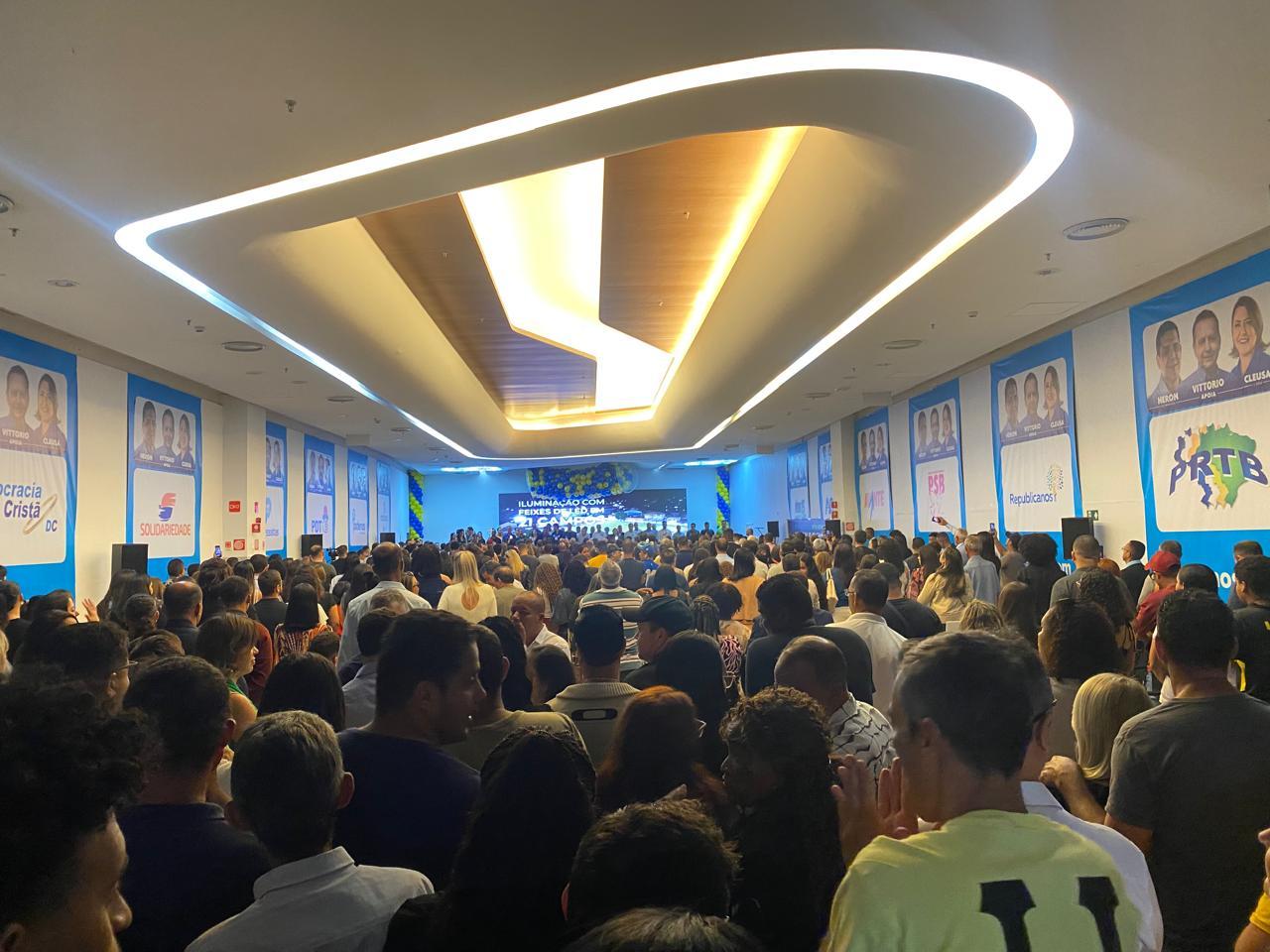 Cerca de duas mil pessoas compareceram na manhã deste sábado (20) ao espaço de eventos do Monte Carmo Shopping para prestigiar a Convenção União Brasil e Partidos Unificados. Durante o evento, foram oficialmente apresentados os nomes de Heron Guimarães (União Brasil) e Cleusa Lara (PL) como candidatos à Prefeitura de Betim nas eleições deste ano.