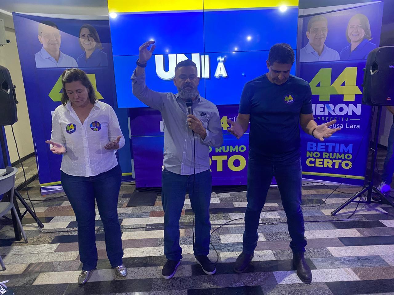 Cerca de 100 pastores de diversas denominações evangélicas participaram de uma reunião, nesta segunda-feira (9), com os candidatos à prefeitura de Betim, Heron Guimarães (União Brasil) e Cleusa Lara (PL). O encontro ocorreu na Casa de Campanha e teve como objetivo apresentar propostas voltadas para a comunidade cristã da cidade.